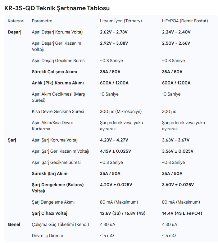 Akü Dönüşüm Uyumluluğu: 3 seri (3S) yapısıyla 11,1V - 12.6V sistemlere tam uyum sağlar. Jel veya sulu akülerin yerine geçen lityum paketlerinin güvenliğini sağlar.
